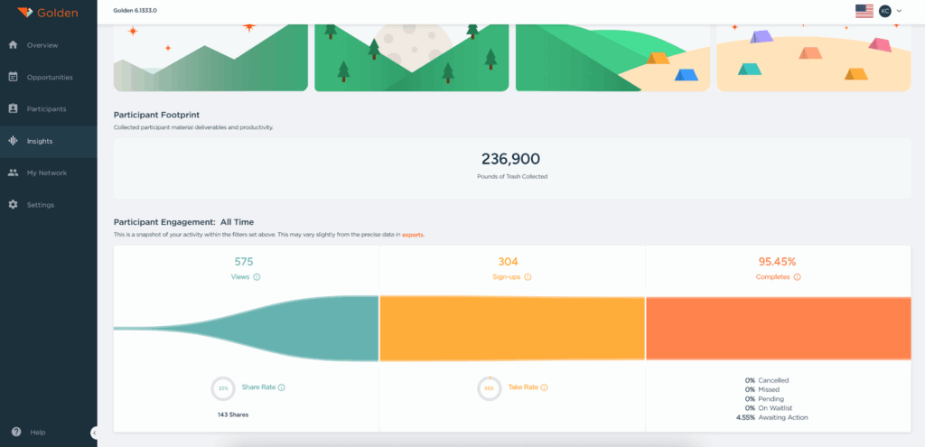 At Golden, we know volunteer managers have enough on their plates. Tracking KPIs shouldn’t be another mountain to climb. That’s why we built our platform to handle the data work for you — so you can focus on people, not spreadsheets.